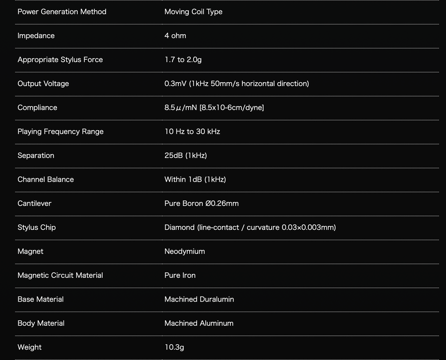 To respond to the demand for a new basic model of Phasemation cartridges, we released the PP-200, which allows you to feel the essence of our top model. The PP-200 has been refined in detail while maintaining the basic performance. The PP-200 pursues the same sound image localization, spatial reproduction, fresh mods and highs, and a rich bass that are inherited from the upper models. The price-performance ratio is exceptional; A diamond Line Contact stylus tip on a Boron cantilever at this price point.
